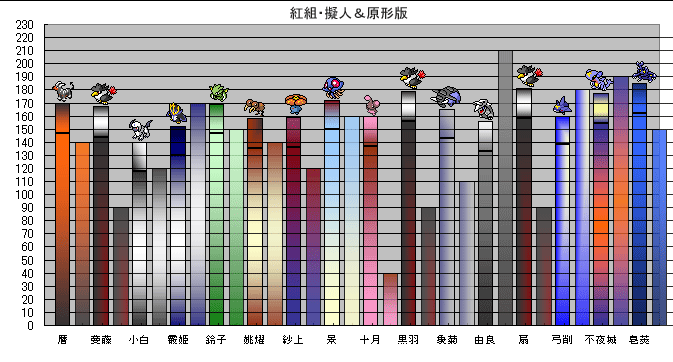 続きに紅組絵茶の最中に作った『紅組【原形】身長表』と、『擬人化&原形合体身長表』を格納しました~^^